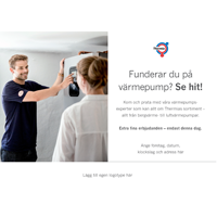 I dessa annonser kan Thermias återförsäljare ange sitt erbjudande för köp och installation av Calibra E med smart och enkelt finansiering per månad. Återförsäljaren ska ange sin logo, sina kontaktuppgifter och sina villkor för erbjudandet i annonsens sidfot.