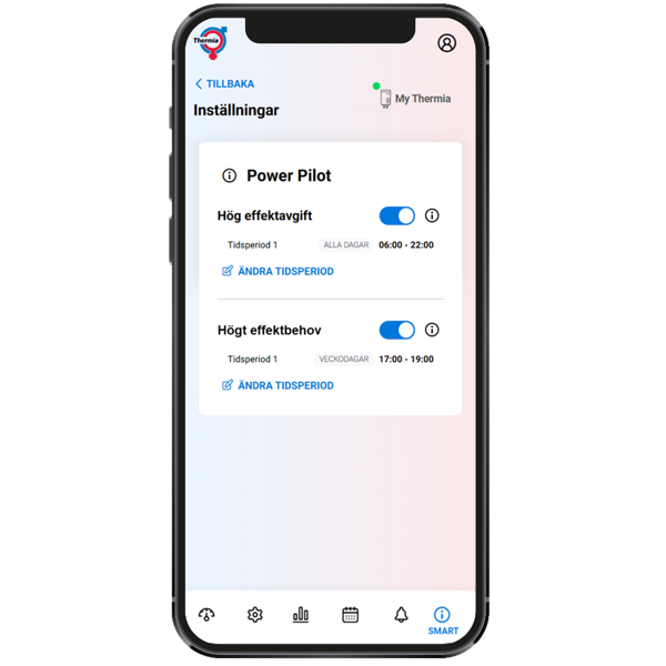 • Styr värmepumpen utifrån dina effektavgifter och förväntade effekttoppar